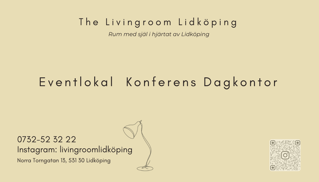Följ gärna vår andra verksamhet The Livingroom Lidköping för Event, Konferens & Kontor på Norra Torngatan 13, Lidköping